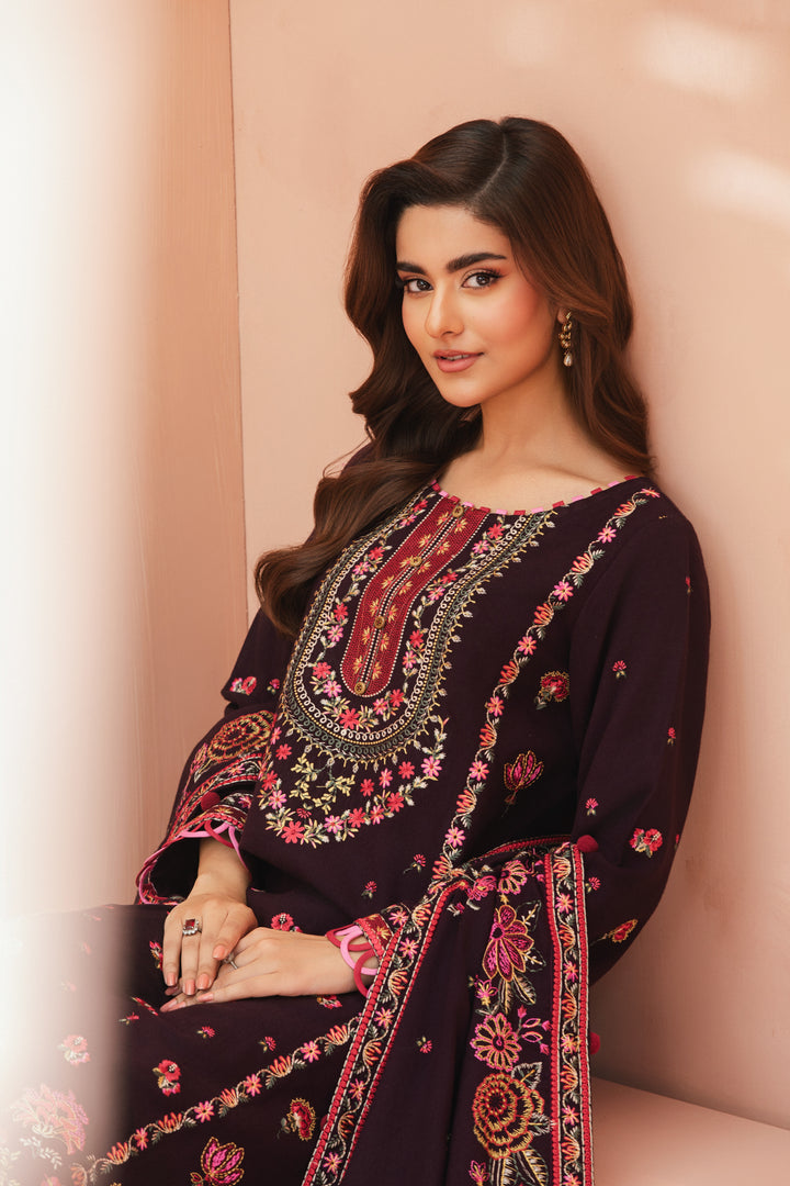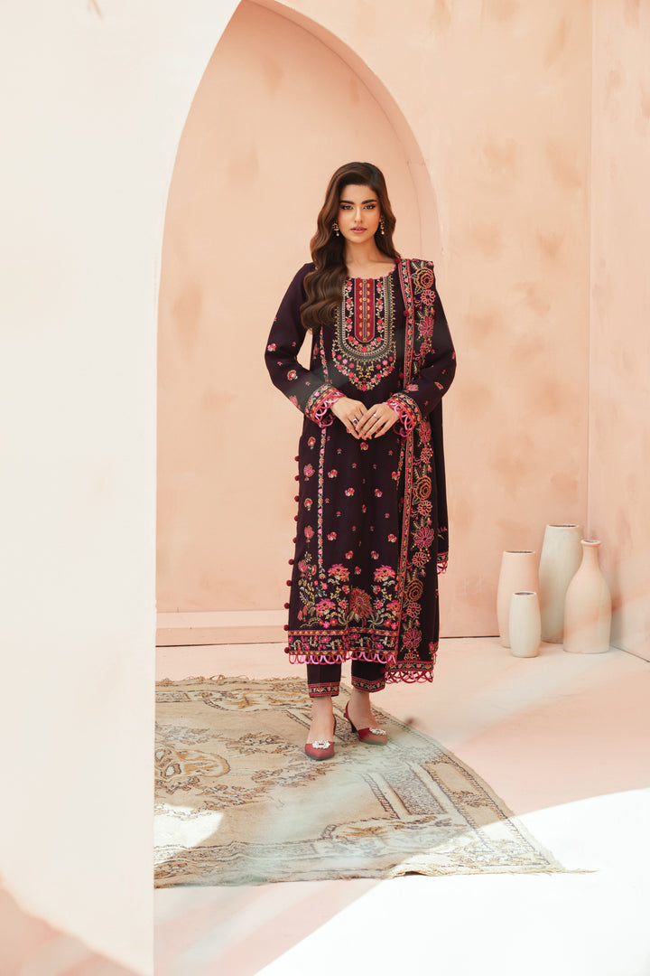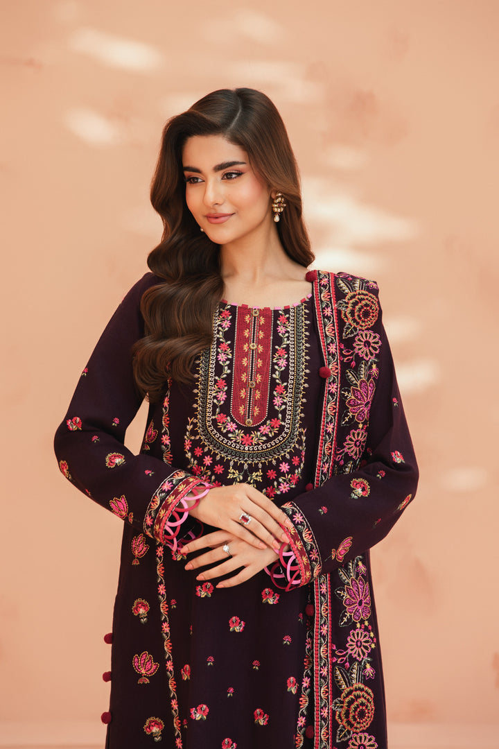 Dark Purple embroidered shirt, paired with dyed trousers and a dyed Shawl.