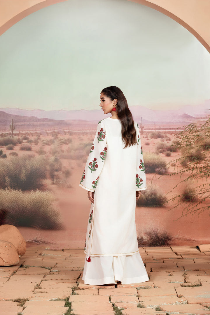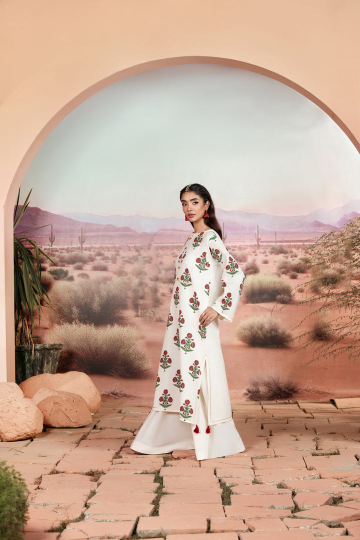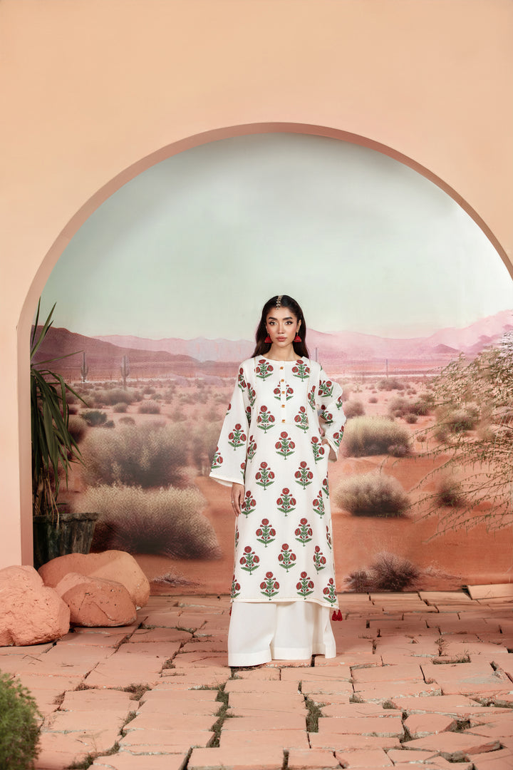 An off-white cambric shirt featuring dyed block print shirt for a refined and timeless look.