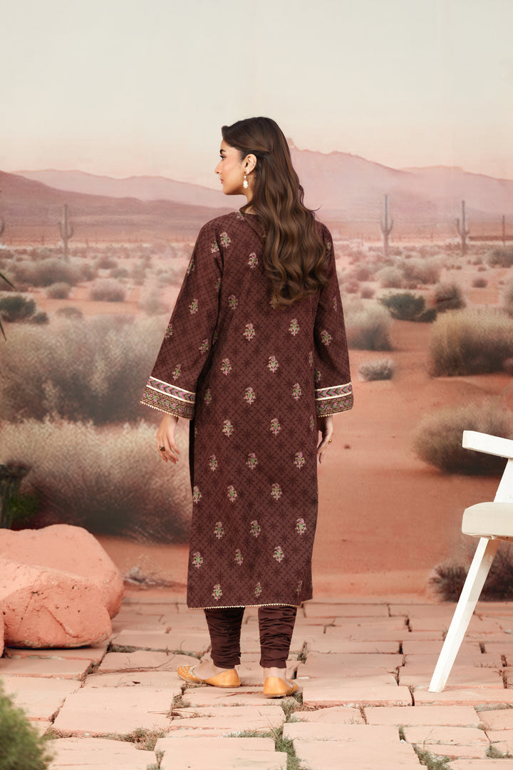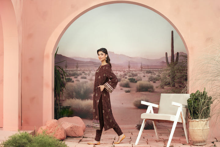 A brown jacquard shirt with neraj block prints, offering a simple yet stylish everyday look.