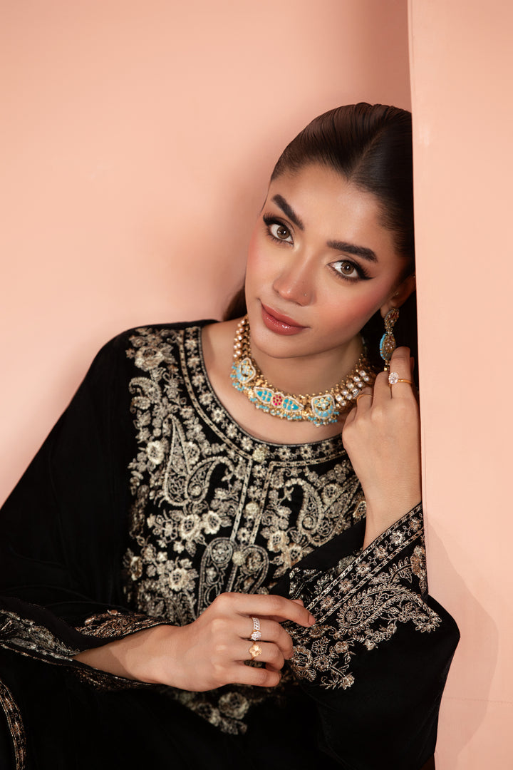 Raha (Black) – Signature Embroidered Velvet Shirt